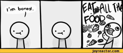 When one has nothing else to do, or cannot afford much of anything then hey, why not chow for now. Put some cheese on a cracker, make a burrito, fill your face till boredom subsides.